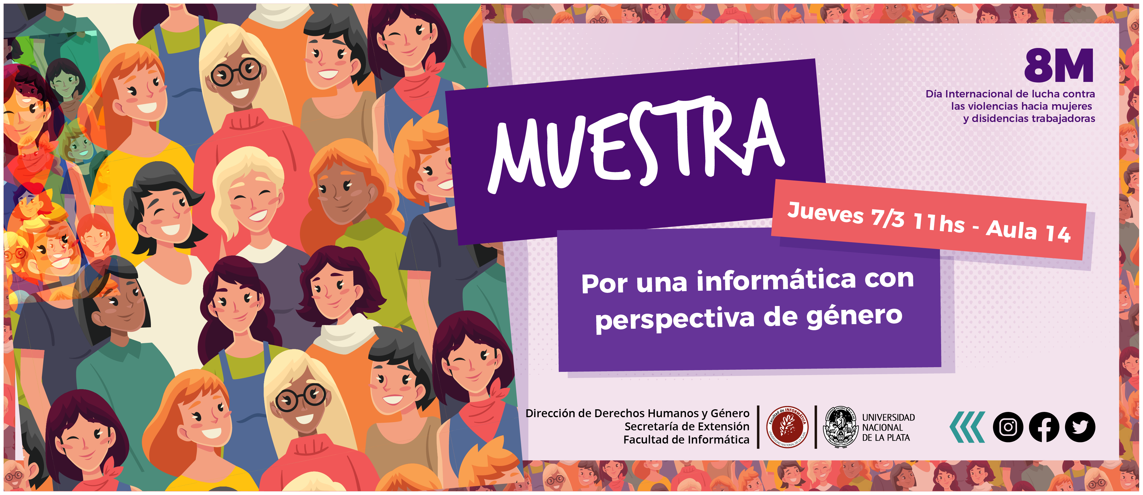 En el marco de la conmemoración del 8M 2024 la Dirección de Derechos Humanos y Género de la Secretaría de Extensión de la Facultad de Informática invita a participar del encuentro “Por una informática con perspectiva de género”. La misma tendrá lugar el jueves 7 de marzo a las 11h en el aula 14 de planta baja de la unidad académica.